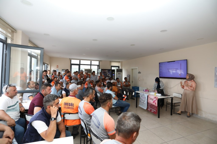 İnegöl Belediyesi ile İnegöl İlçe Sağlık Müdürlüğü iş birliğiyle düzenlenen farkındalık eğitiminde erken teşhisin kanser hastalığında hayat kurtardığını belediye personeline aktardı.