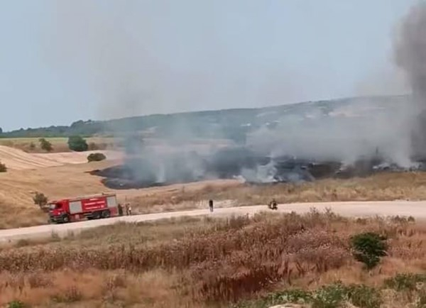 Bursa'nın İnegöl ilçesinde ekili buğday tarlalarında yangın çıktı.
