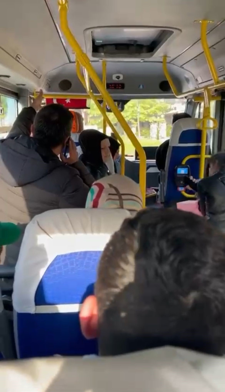 Bu durum yolcular tarafından fark edilince minibüste tartışma çıktı. anlar kameraya yansıdı
