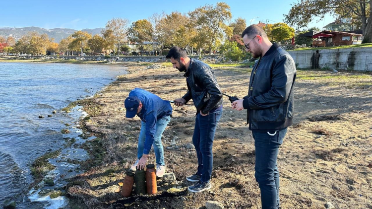 İznik Gölü kıyısında işletmesi bulunan Hüseyin Şener, gölün kıyısında yürüdüğü esnada gölün içinde cisimler olduğunu fark etti.