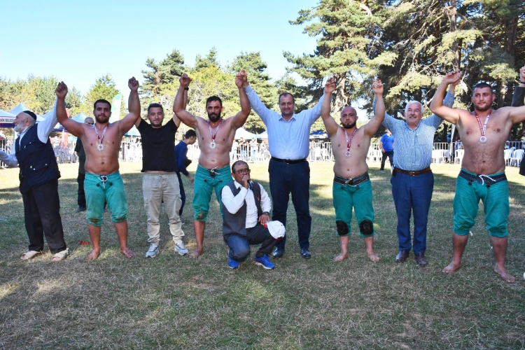 Dereceye giren pehlivanlara madalyalar protokol tarafından takdim edildi.