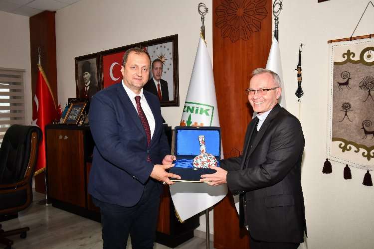 Rum Patrikliği'nden Kıdemli Metropolit Emmanuel başkanlığında ve Latin Katolik Kilisesi'nden Vatikan Ankara Büyükelçisi Marek Solczynski başkanlığındaki müşterek heyet İznik Belediye Başkanı Kağan Mehmet Usta’yı makamında ziyaret etti.