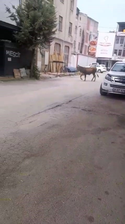 Mahmudiye Mahallesi Tandoğan Caddesi'nde hayvan pazarından alınan inek, eve götürüldüğü sırada sahibinin elinden kurtularak kaçtı.