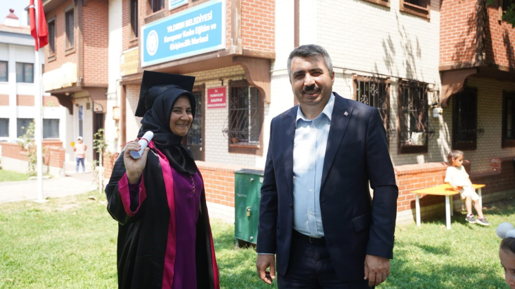 Yıldırım Belediye Başkanı Oktay Yılmaz, Karapınar Kadın Eğitim ve Girişimcilik Merkezi’nde giyim üretim teknolojileri alanında eğitimini başarı ile tamamlayarak mezun olan kadınların mutluluğunu paylaştı.