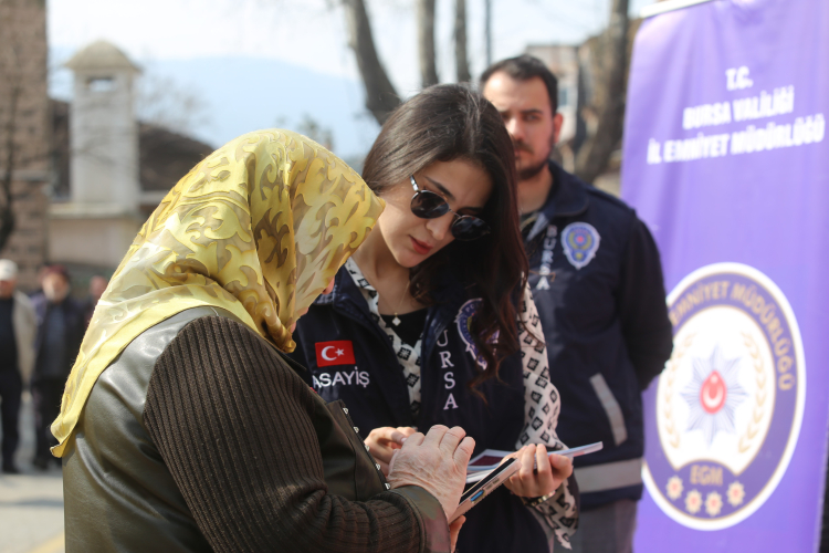 Bursa'da polis ekipleri kadına yönelik şiddetin önüne geçilmesi hedefiyle kent merkezinde stant kurdu.