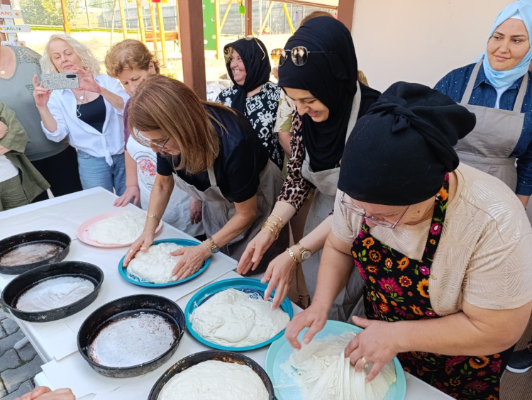 Dayanışma ruhunun ve birlikte üretmenin en güzel örneklerinden birinin sergilendiği buluşmada, kadınlar hep birlikte ekmek yapma atölyesine katıldı. Keyifli ve samimi anların yaşandığı etkinlikte kadınlar, hem sosyalleşerek bağlarını güçlendirdi hem de verimli bir gün geçirdi.