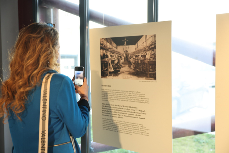 Sergi, 1910 yılında Kopenhag’da düzenlenen Uluslararası Emekçi Kadınlar Konferansı’nda Clara Zetkin ve arkadaşlarının Dünya Kadınlar Günü fikrini ortaya attığı dönemde, Bursa’da ipek işçisi kadınların grevde olduğu gerçeğini hatırlatarak, kadın emeğinin tarihi mücadelesine dikkat çekiyor.
