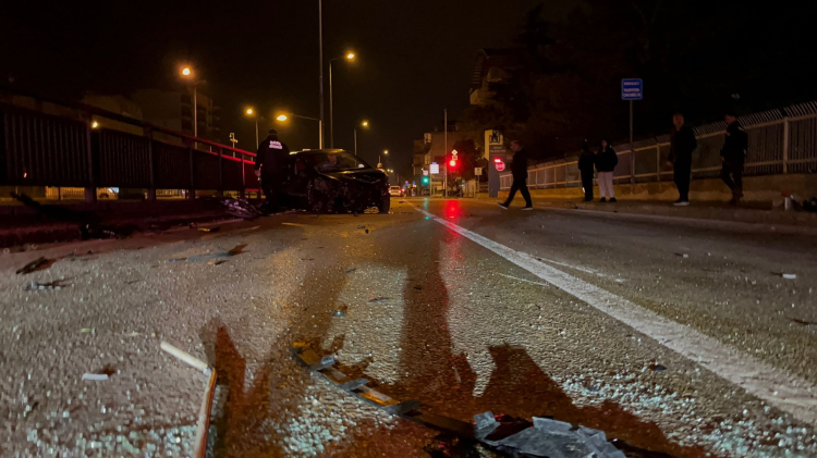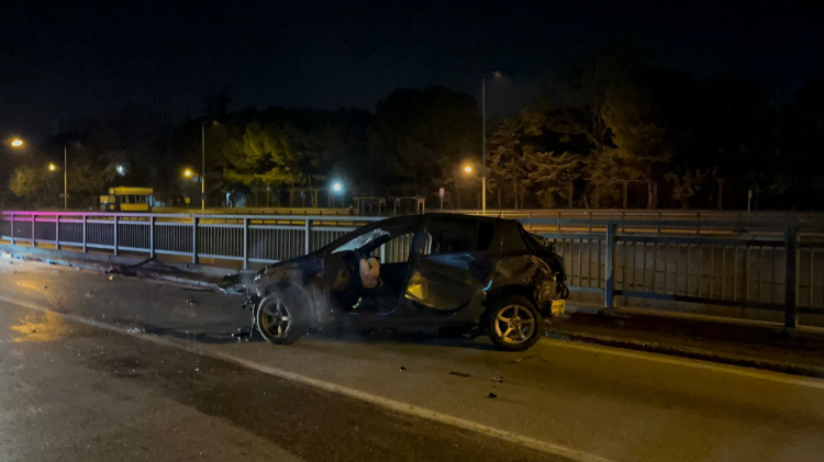 Bursa'da gizli buzlanma sebebiyle kontrolden çıkan otomobil önce kaldırıma, daha sonra ise demir bariyerlere çarptı.