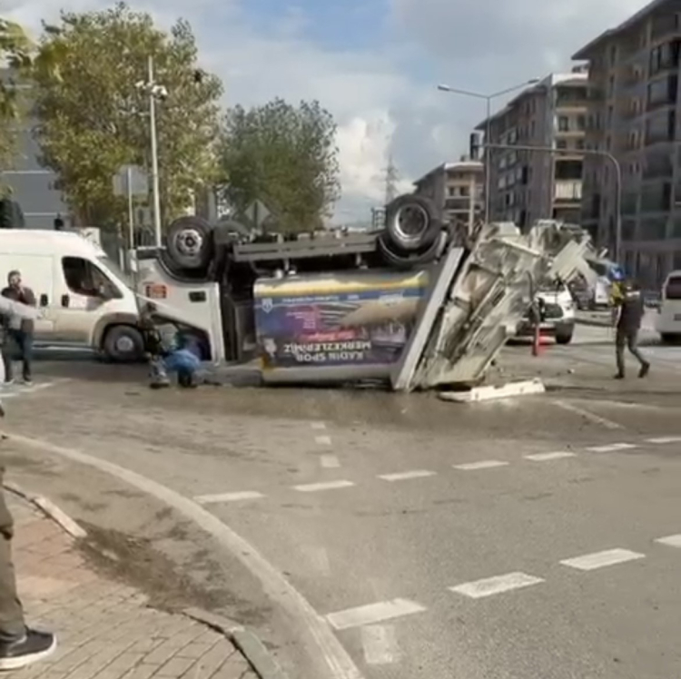 Olay, Yıldırım ilçesi Yavuzselim Mahallesi’nde meydana geldi. Edinilen bilgiye göre, seyir halindeki çöp kamyonu sürücüsünün direksiyon hakimiyetini kaybetmesi sonucu kontrolden çıktı. Refüje çarpan tonlarca ağırlığındaki araç takla atarak ters döndü. Gürültüyü duyan çevredeki vatandaşlar büyük panik yaşarken, kazayı görenler sürücüyü araçtan çıkarmak için seferber oldu.