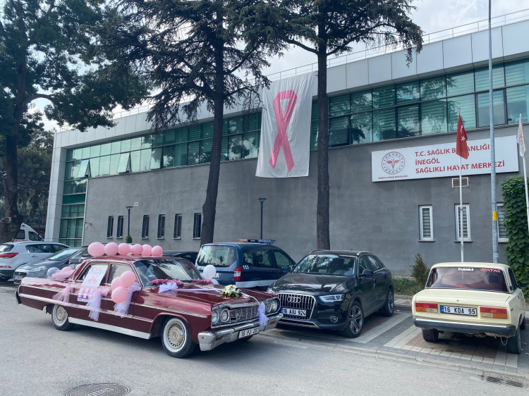 Farkındalık etkinliği kapsamında klasik bir otomobil, pembe kurdele ve balonlarla süslenerek İnegöl sokaklarında gezdirildi. Etkinlikle, vatandaşların meme kanserinde erken teşhisin önemine dikkat çekilmesi hedeflendi.