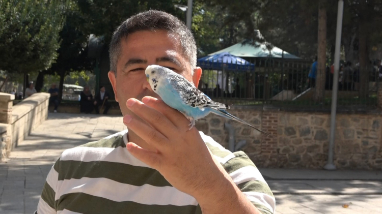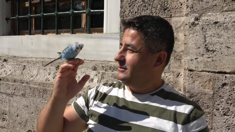 Merkez Osmangazi ilçesindeki tarihi Emir Han'da berberlik yapan Murat Tekin'in en yakın dostu, Müdür ismini verdiği muhabbet kuşu.