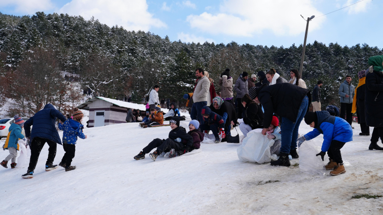 Bursa'da etkili olan kar yağışının ardından Uludağ'ın zirvesinde adım atacak yer kalmayınca, binlerce vatandaş rotasını Gürsu ilçesindeki Ericek'e çevirdi.