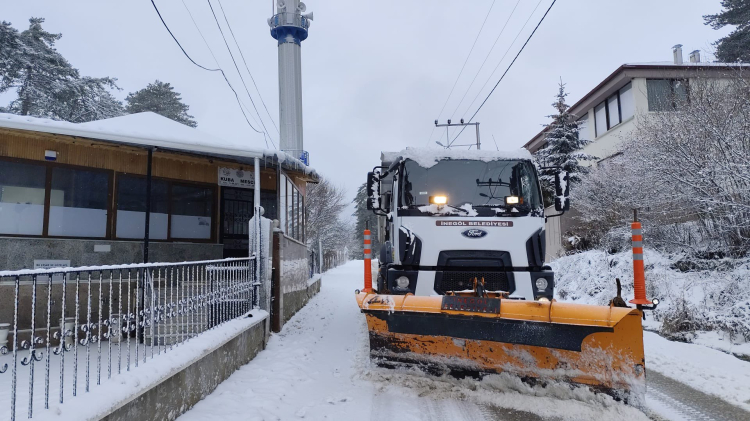 Kent genelinde etkili olan kar yağışı nedeniyle ekipler, ulaşımın aksamaması ve güvenliğin sağlanması amacıyla küreme ve tuzlama çalışmalarını aralıksız sürdürüyor.