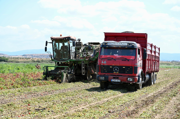 Türkiye'nin salçalık domates ihtiyacının yüzde 40'ını karşılayan Karacabey Ovası'nda hasat tüm hızıyla devam ediyor.