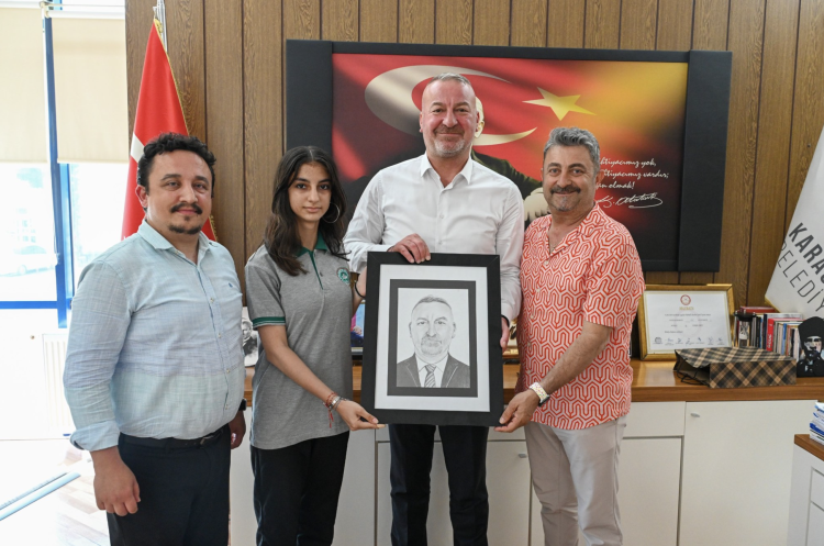 Okul müdürü Tamer Sert ve Görsel Sanatlar Öğretmeni Altuğ Meşe eşliğinde belediyeyi ziyaret eden Hiranur, çizdiği portreyi Başkan Karabatı’na bizzat sundu. Hediye karşısında duygulanan Başkan Karabatı, “Bu anlamlı eseriyle kalbindeki zarafeti ve yeteneğini ortaya koyan Hiranur’a yürekten teşekkür ediyor, kendisine başarılar diliyorum,” ifadelerini kullandı. Karabatı ayrıca, öğrencinin gelişiminde emeği geçen okul müdürü Sert ve öğretmen Meşe’ye de teşekkür etti.