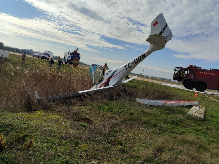 Bursa'nın Yenişehir Havaalanından havalanan FENIX Uçuş Okuluna ait eğitim uçağı, emniyetle inişini tamamladıktan sonra taksi esnasında pisti terk ederken, taksi yolu dışına çıktı. Burun üzeri kalan uçaktan, öğrenci kendi imkanlarıyla çıktı. Her ihtimale karşı olay yerine havalimanına ait itfaiye ekipleri sevk edildi.