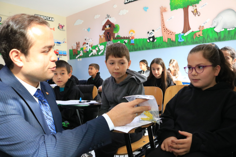 Bursa'nın Keles ilçesinde Kaymakam Muhammed Ali Yolal tarafından başlatılan "Evim Güvende, Geleceğim Güvende" Projesi kapsamında ilkokul ve ortaokul öğrencilerine depreme karşı tedbir almaları amacıyla dolap sabitleme aparatı dağıtıldı.