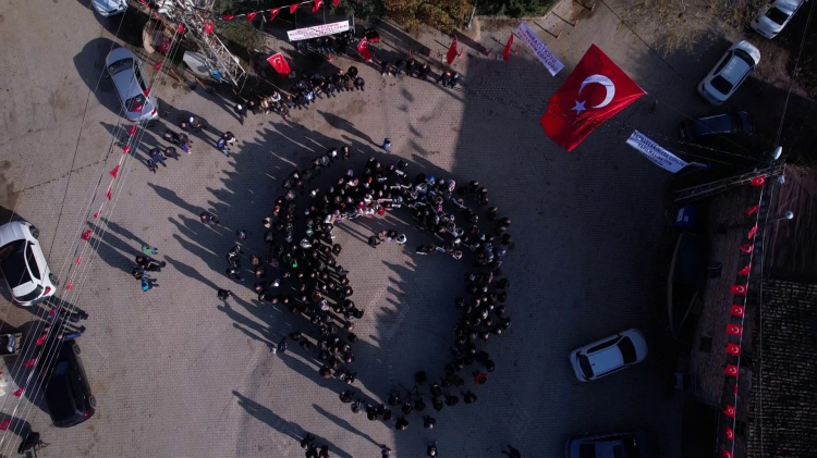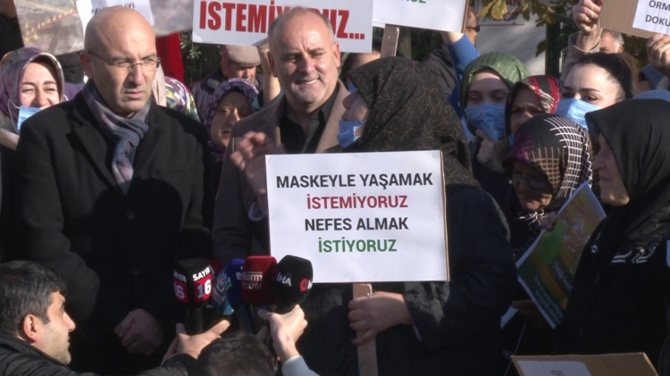 Köy meydanında toplanan kalabalık “Geleceğimizi çöpe atmayın” şeklinde pankart açıp slogan attı.