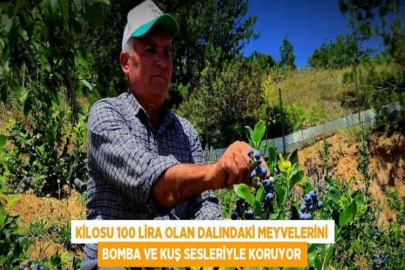 KİLOSU 100 LİRA OLAN DALINDAKİ MEYVELERİNİ BOMBA VE KUŞ SESLERİYLE KORUYOR