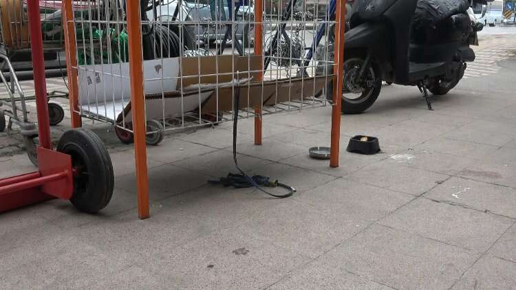 Bursa’da bir kadın, hava alsın diye dükkanın önüne bağlanan köpeği önce sevdi sonra çaldı. O anlar güvenlik kamerasına yansıdı.
