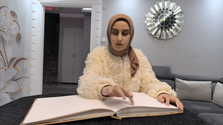 Bursa'nın İnegöl ilçesinde doğuştan görme engelli 16 yaşındaki Medine Mevlütoğlu'nun Kur'an-ı Kerim aşkı görmeyen gözü oldu.