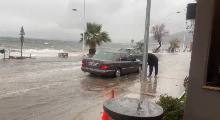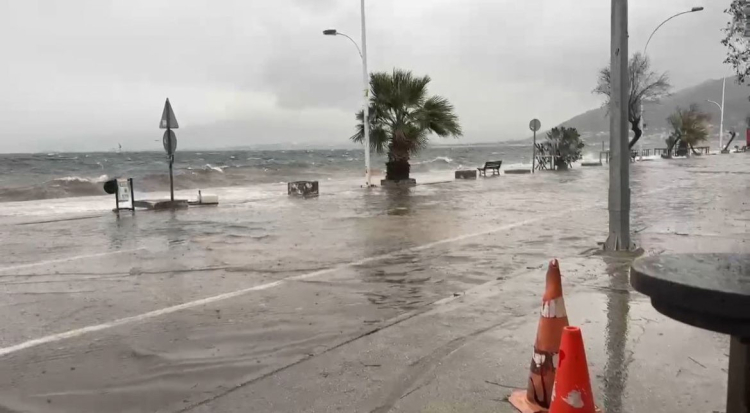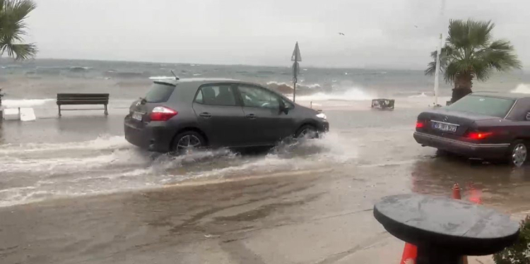 Kurşunlu sahilinde taşan deniz caddeleri göle çevirdi.
