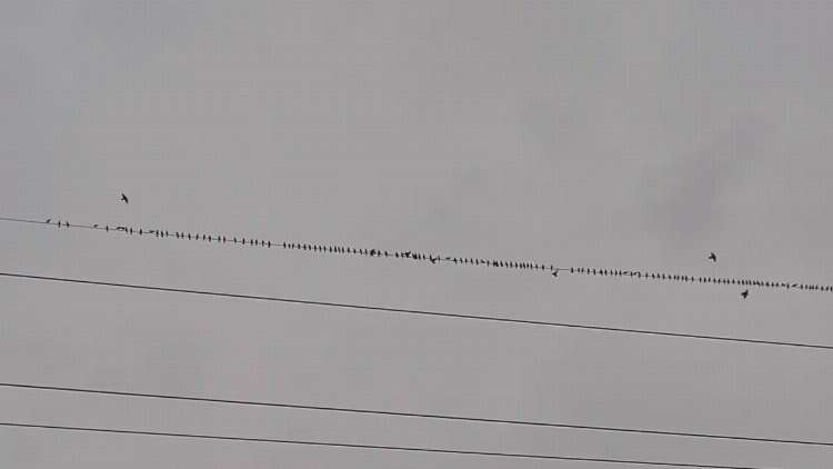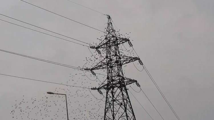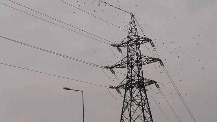 Elektrik direklerine ve tellerine konan yüzlerce sığırcık kuşu görsel şölen oluşturdu.