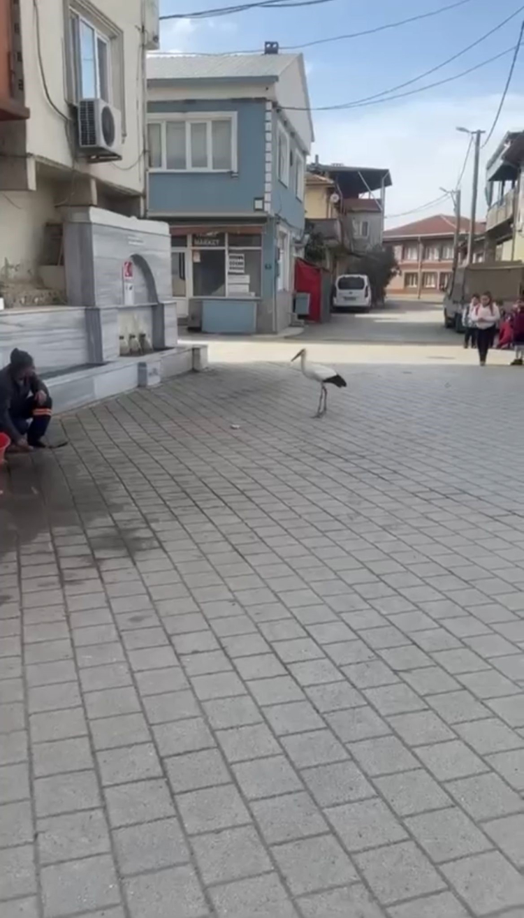 Yusuf dayı, leyleği 'Bilal'i elleriyle beslediği o anlar cep telefonu kamerasına yansıdı.