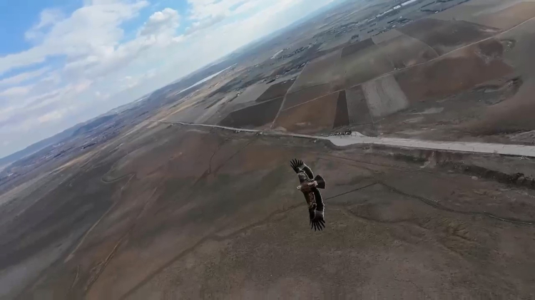 Bursa'da arazide çekim yapan dron, o sırada havada olan şahinin radarına takıldı.