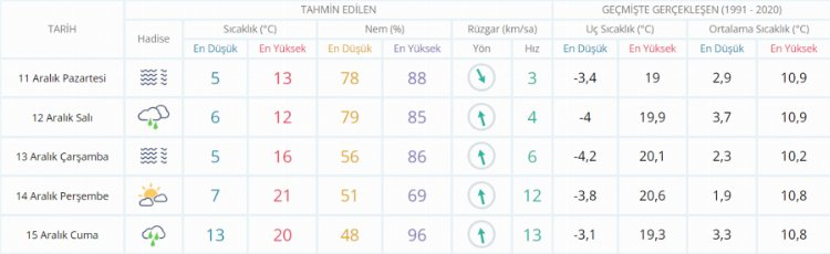 5 GÜNLÜK HAVA DURUMUTAHMİNİ