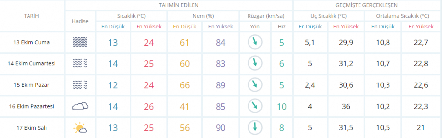 5 GÜNLÜK HAVA DURUMUTAHMİNİ