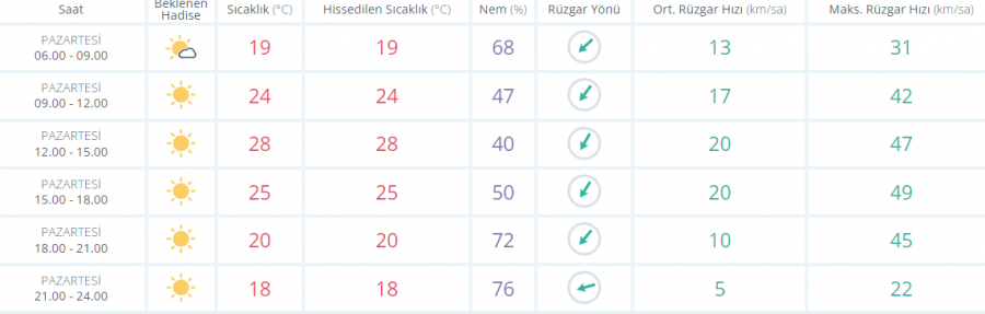Parçalı ve az bulutlu geçeceği tahmin ediliyor. Rüzgarın; kuzey, kuzeydoğu yönlerden kuvvetli (40-60 km/saat) esmesi bekleniyor.