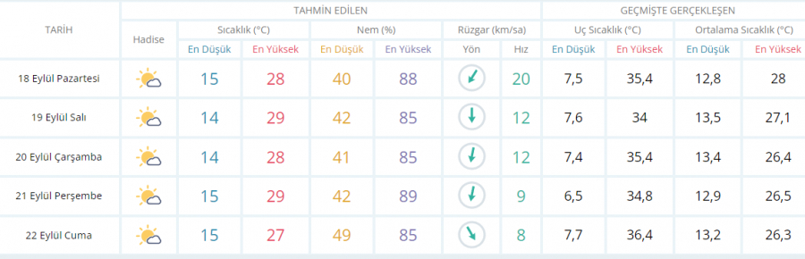 Meteoroloji Genel Müdürlüğü tarafından yapılan son değerlendirmelere göre: Ülkemizin kuzey ve doğu kesimlerinin parçalı yer yer çok bulutlu, Rize, Artvin, Ardahan ve Kars çevreleri ile Van'ın kuzey ve doğusu, Ağrı'nın güney ilçelerinin yerel sağanak ve gök gürültülü sağanak yağışlı, diğer yerlerin az bulutlu ve açık geçeceği tahmin ediliyor. Yağışların; Rize çevreleri ile Artvin'in kuzey ilçelerinde yerel kuvvetli olması bekleniyor.