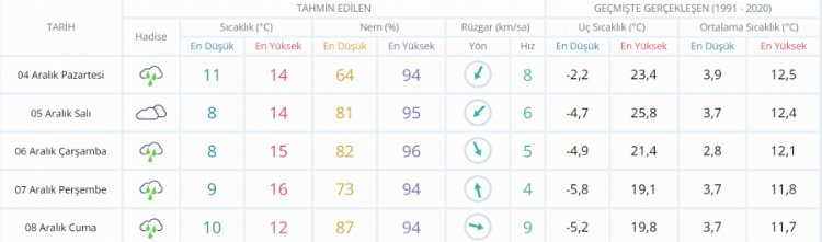 5 GÜNLÜK HAVA DURUMU TAHMİNİ