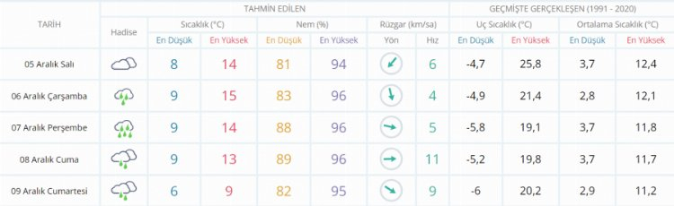 5 GÜNLÜK HAVA DURUMU TAHMİNİ