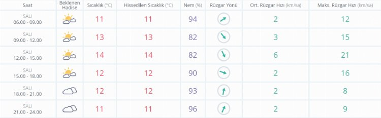 Parçalı ve çok bulutlu, yağmurlu geçeceği tahmin ediliyor. Yağışların yerel kuvvetli olması bekleniyor.