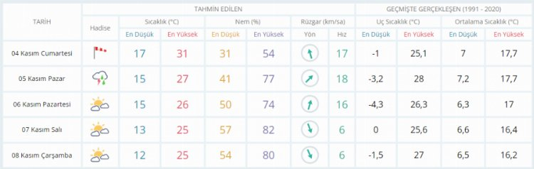 Parçalı bulutlu geçeceği tahmin ediliyor. Gece ve sabah saatlerinde iç kesimlerde yer yer pus ve sis bekleniyor.