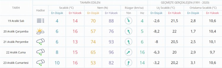 5 GÜNLÜK HAVA DURUMU TAHMİNİ