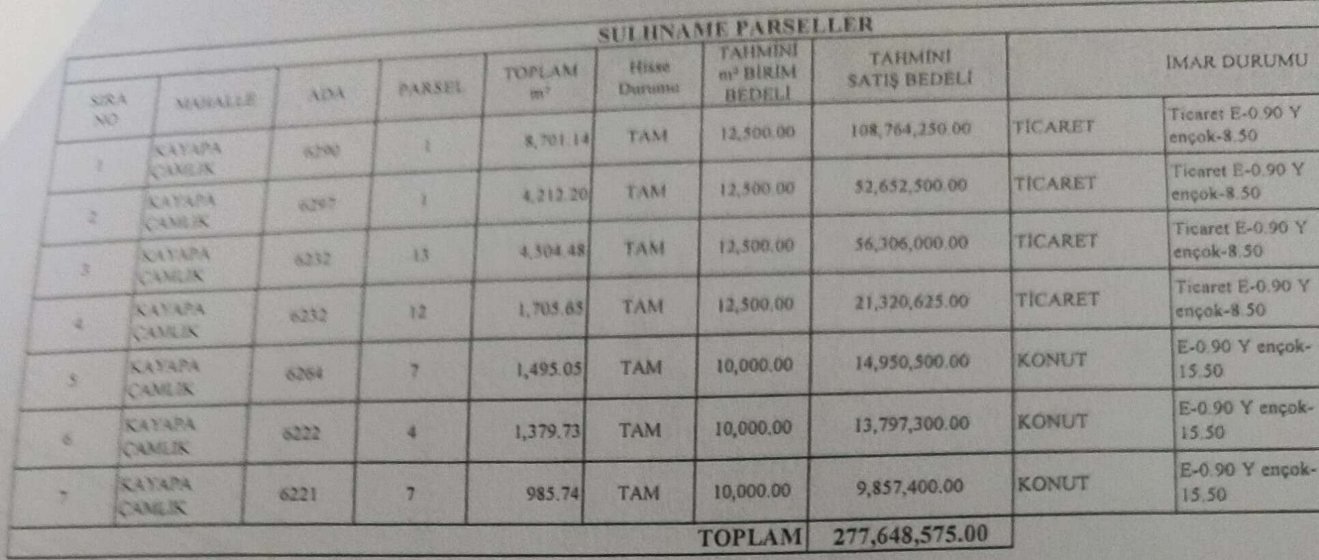 Hepsinin Kayapa Çamlık bölgesinde olan 7 arsa ise şu şekilde sıralanıyor;