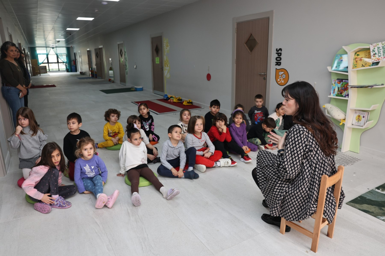 Nilüfer Belediyesi İklim Değişikliği ve Sıfır Atık Müdürlüğü’nden biyolog Melahat Kaynak ve çevre mühendisi Ufuk Ekinci, çocuklara su kaynaklarını koruma, bilinçli su tüketimi ve su tasarrufu alışkanlığı kazanmaları konusunda bir sunum gerçekleştirdiler. Biyolog Melahat Kaynak "Küçük Yağmur Damlası" kitabından kesitler okuyarak, çocuklara günlük hayatta su tasarrufu konusunda pratik bilgiler de sundu.