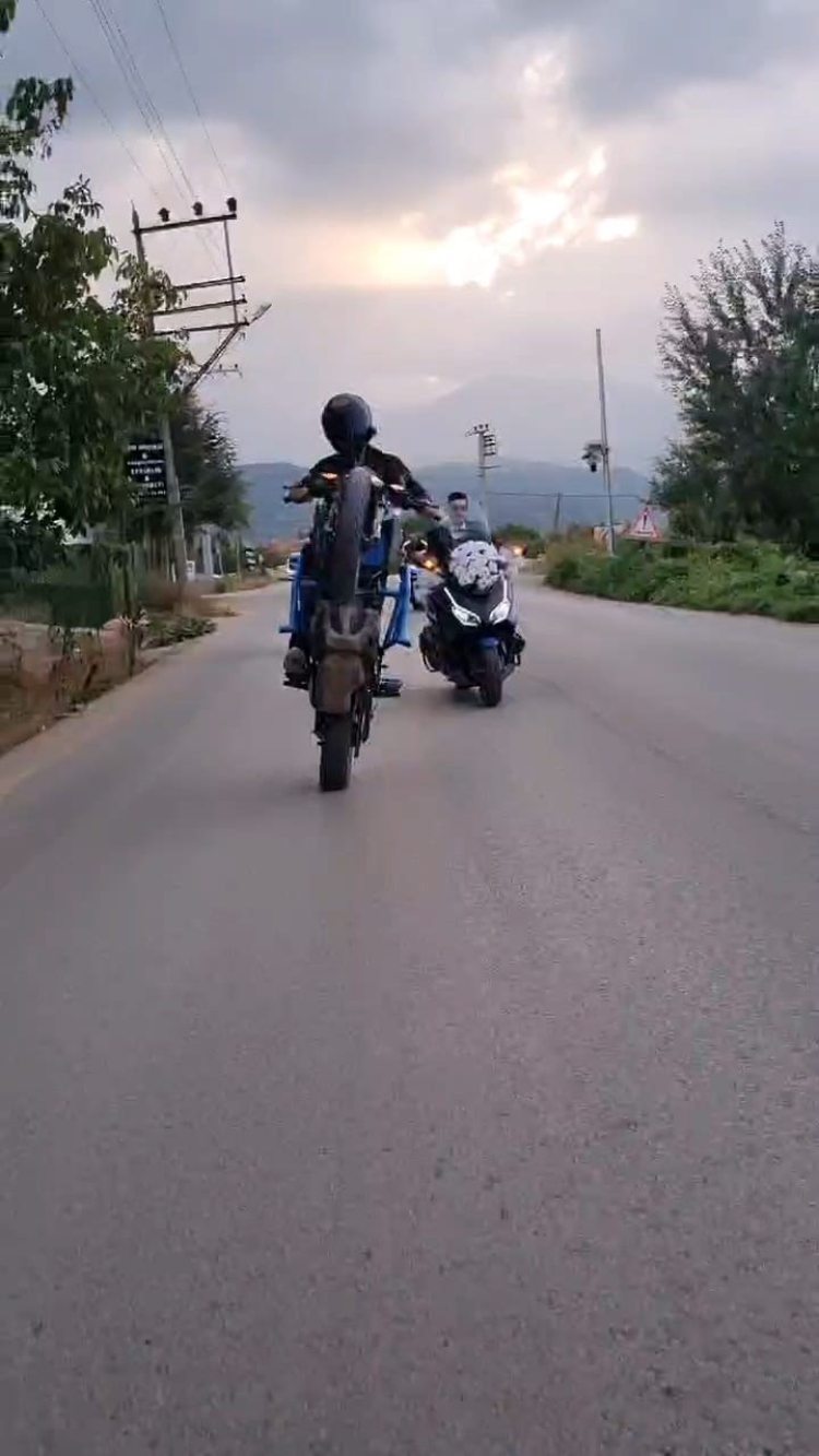 Çiftin yakın arkadaşları da motosikletleriyle konvoya katılarak renk kattılar. Çift motosikletleriyle önde seyrederken konvoydaki motosiklet tutkunları da onları takip etti. Konvoydaki bazı sürücülerin tek teker seyretmesi tehlikeli anlar yaşattı.