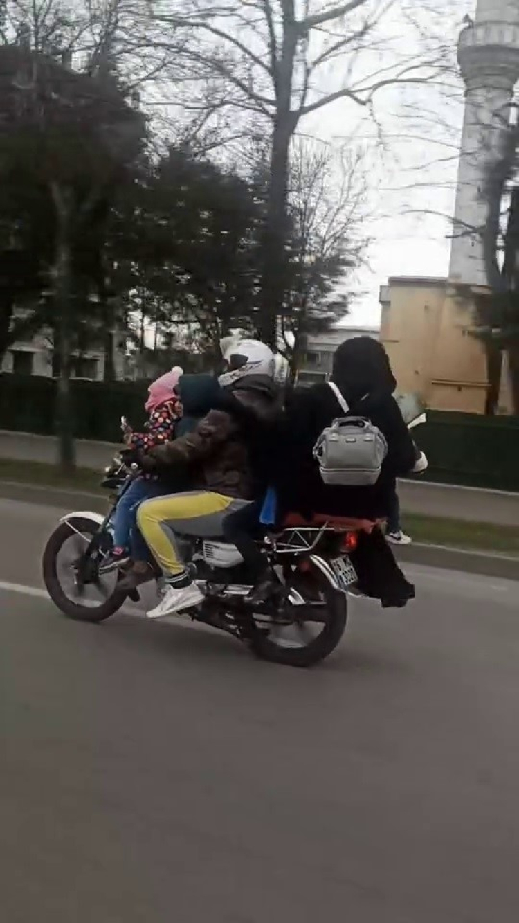 Bursa'da bir aile, motosiklete 6 kişi binerek ilerlemeye başladı.