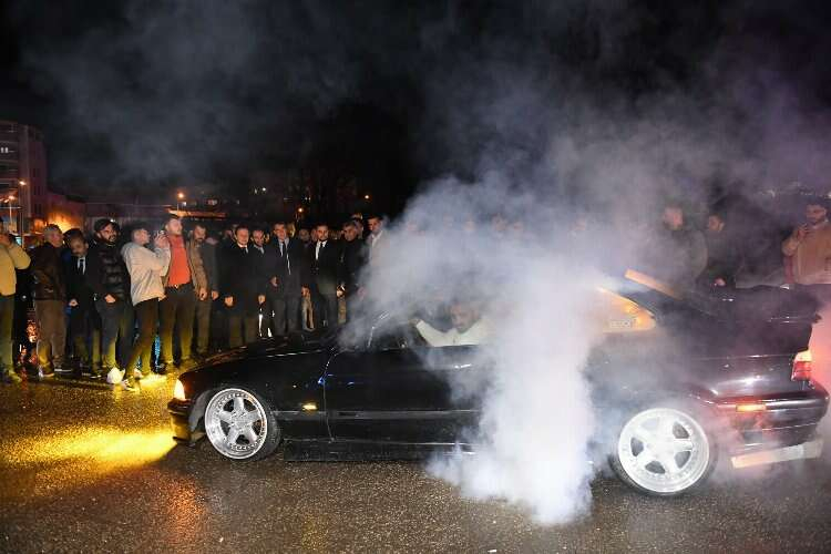 Gençlere araçlarla ilgili sorular soran Dündar, birbirinden güzel araçlara binmeyi de ihmal etmedi. Dündar’ın beğenisine sunduklarını araçlarının özelliklerini tek tek sergileyen gençler, lastik yakma gösterisi ile de geceye renk kattı.