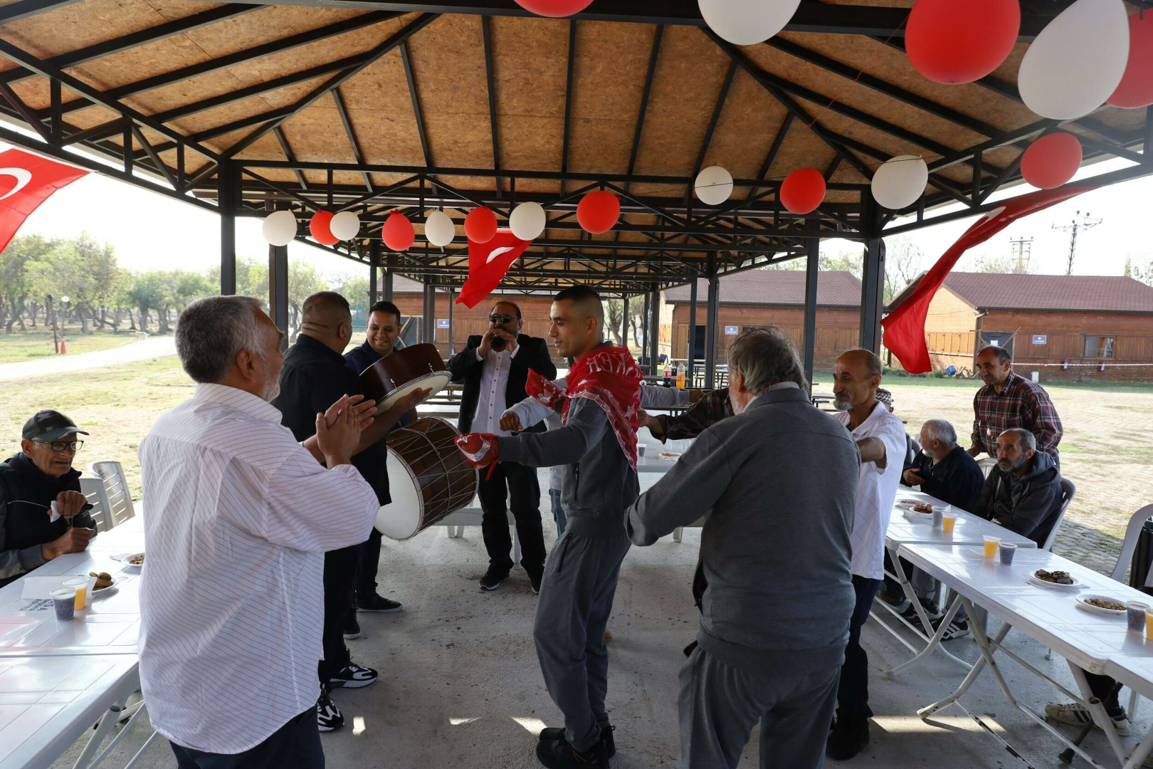 Bursa Büyükşehir Belediyesi’nin en önemli sosyal sorumluluk projelerinden biri olan ve parçalanmış hayatları sıcak bir yuvada buluşturan Erkek Konuk Evi, bu kez hüznün değil mutluluğun adresi oldu. Asker eğlencesinin düzenlendiği Konuk Evi'nde, kalan misafirler davul zurna eşliğinde doyasıya eğlendi.