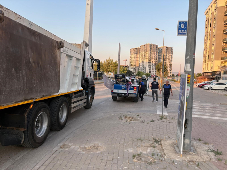 Vatandaşların geçişini zorlaştıran ve kentin estetik görünümünü olumsuz etkileyen bu unsurlar, zabıta ekipleri tarafından kaldırılarak, araçlara yüklendi. Yasal prosedürlerin tamamlanmasının ardından malzemeler, Görükle şantiyesine taşındı.