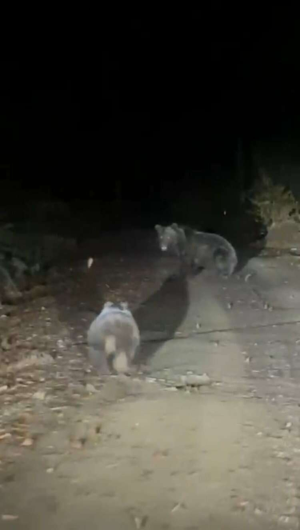 Ayıları gören arkadaşlar şaşkınlıklarını gizleyemezken, amatör kamerayla da o anları görüntülediler. Ayıları bir süre takip eden arkadaşlar, yollarını kaybeden ayıları ormana yönlendirdiler.