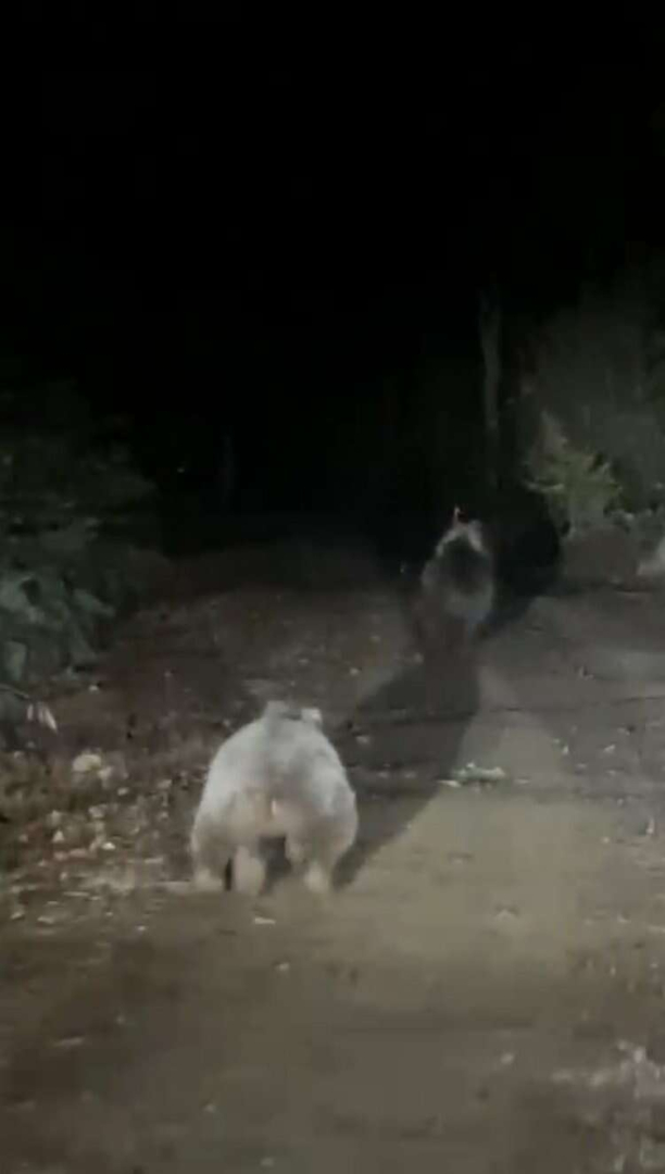 O anlar amatör kameraya yansırken, sürücü ise aracıyla ayıları ormana yönlendirdi.