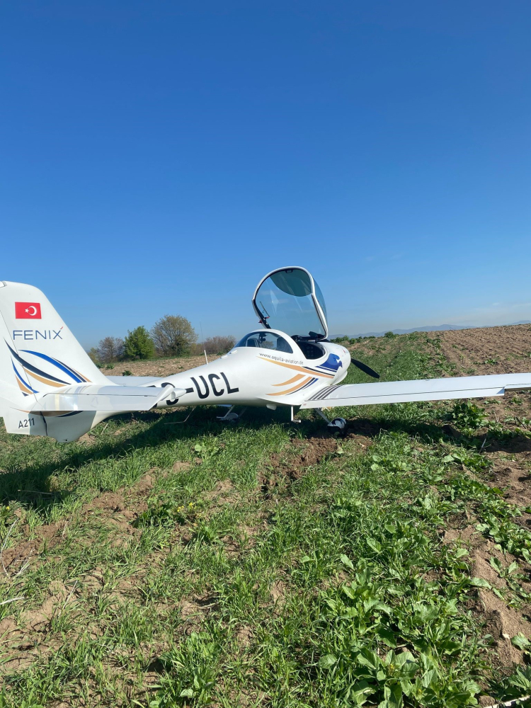 Bursa'da Yenişehir Havalimanı'ndan kalkış yapan bir eğitim uçağı, teknik sebeplerle tarlaya zorunlu iniş yaptı.