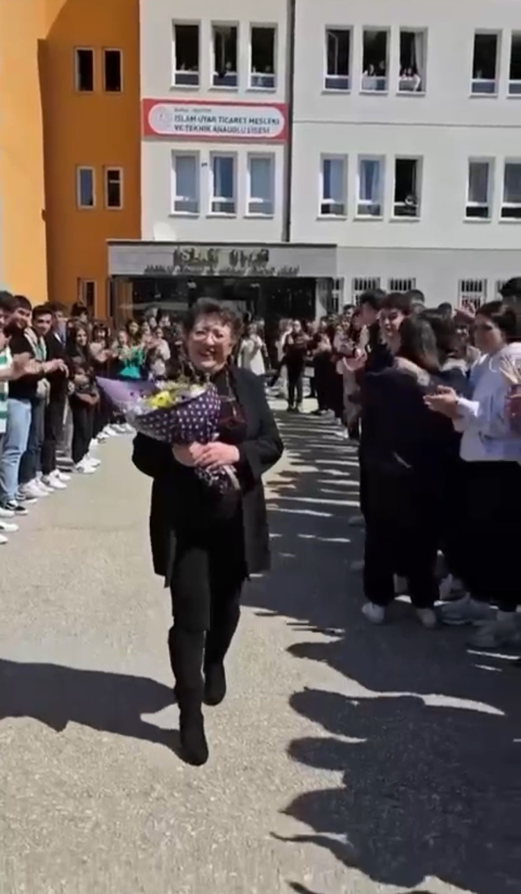 Okulun koridorlarında sıra olmaya başlayan öğrenciler, sırayı okul çıkışına kadar uzattı. Teneffüs zilinin çalmasıyla beraber sınıf kapısını açan Akkör'e, çiçek takdim edildi. Okul bahçesine kadar alkışlarla uğurlanan matematik öğretmeni Akkör'ün duygusal anları, saniye saniye amatör kamera ile kaydedildi.