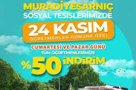 Mustafakemalpaşa Belediyesi öğretmenler gününe özel bir kampanya başlattı. 2019 yılından bu yana hizmet veren Muradiyesarnıç Sosyal Tesislerinde, öğretmenlere ve emekli öğretmenlere yüzde 50 indirim uygulanacak.